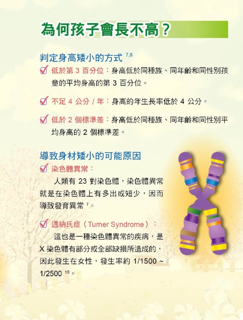 - 每年長高低於四公分,有生長遲緩現象。